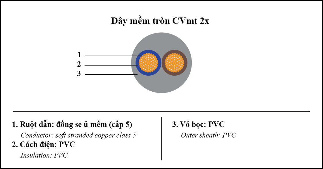 (*): tiết diện 0.5 mm2 có điện áp danh định 300/300V