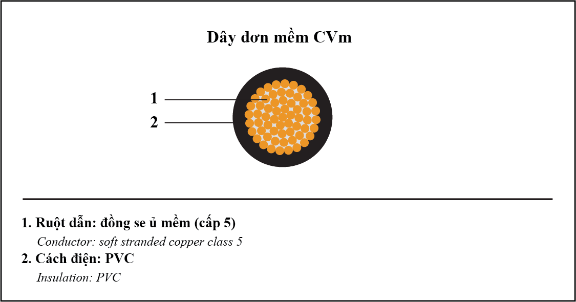 (*): Các loại dây tiết diện đến 1 mm2 có điện áp danh định 300/500V